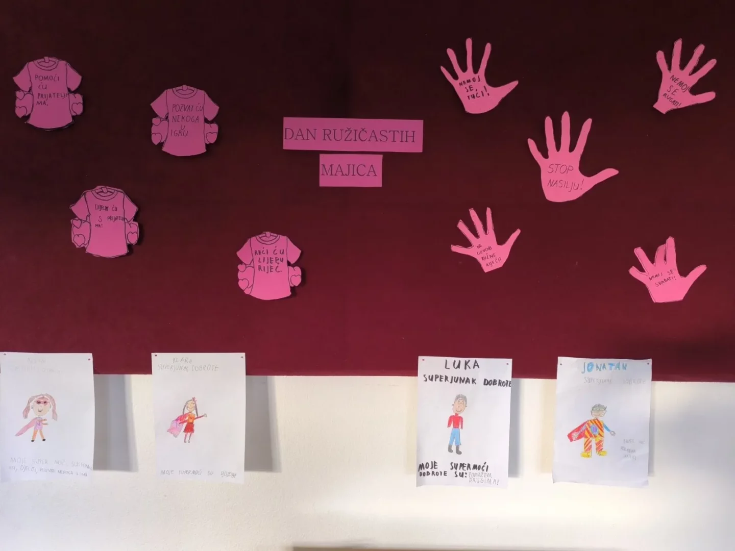 Središnji dio obilježavanja bio je stvaranje razrednog „Zida dobrote“, na kojem su učenici ispisivali i crtali poruke o lijepim djelima koja mogu učiniti jedni za druge. Svaka poruka bila je ispisana na papirnatoj ružičastoj majici koju su sami izradili, čime su simbolično pokazali da biraju dobrotu i podršku umjesto nasilja.