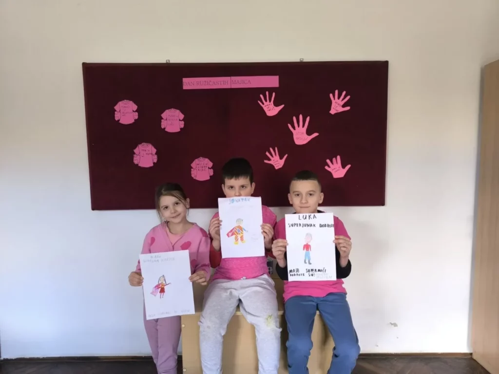Učenici 1. i 2. razreda PŠ Drežnik obilježili su Dan ružičastih majica kroz niz kreativnih i poticajnih aktivnosti usmjerenih na razvijanje dobrote, empatije i međusobnog poštovanja.