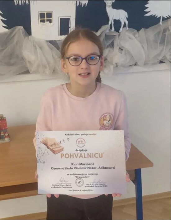 I ove godine su učenici naše škole sudlovali u natječaju Krasnoslov u organizaciji Ogranka Matice hrvatske Slavonski Kobaš. K.M., L.G. i Z.R.B. su se natjecale u konkurenciji učenika razredne nastave krasnosloveći pjesme: U očima nešto piše, Stanislava Femenića i Modre ljepotice, Vere Zemunić. Svojom sigurnošću i nastupom pokazale su umijeće izražajnog govorenja i scenskog nastupa. Mentorice učenica bile su učiteljice razredne nastave Tonka Došlić i Koraljka Šimić. Ponosni smo na hrabrost i vrijedan rad naših učenica!