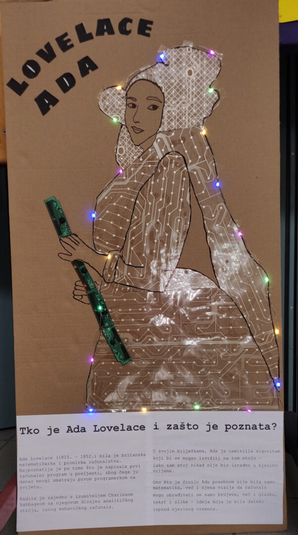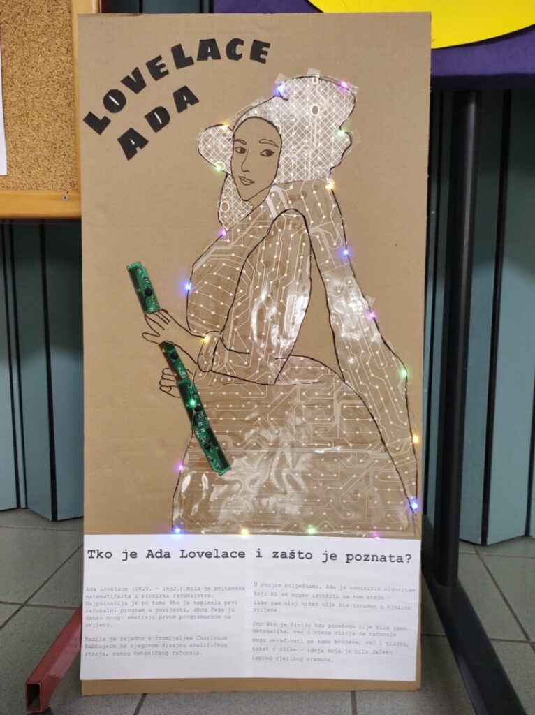 Paralelno s time, članovi izvannastavne aktivnosti Tech team marljivo su radili na izradi plakata Ade Lovelace, koji je rezultat višetjednog rada. Lice Ade nacrtano je markerom, dok su kosa i odjeća izrađeni od membranske folije iz tipkovnica, s vidljivim elektroničkim vezama. Njezin poznati štap prikazan je pomoću zelenih kartica iz tipkovnica, a sve je ukrašeno LED lampicama koje daju plakatima moderan, cyber vizualni dojam.