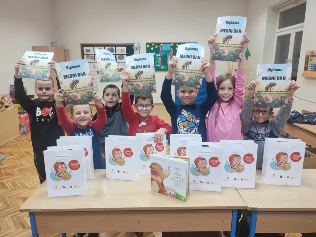 Dana 8.12. učenici 1. r. PŠ Gunjavci obilježili su Školski medni dan. Naučili su nekoliko novih riječi koje vežemo uz med i pčele, a to su PČELAR, KOŠNICA, SAĆE, VRCANJE i TRUT. Zabavili su se uz zanimljivu priču o medi koji je kroz cijeli tjedan pokušavao na sve moguće i nemoguće načine doći do meda, a samo je trebao upotrijebiti čarobnu riječi MOLIM. Nakon priče, odigrali smo pčelinju igru te uz nju vježbali čitanje. Učenici su zaslužili diplome koje su uz slatki med ponijeli svojim kućama.