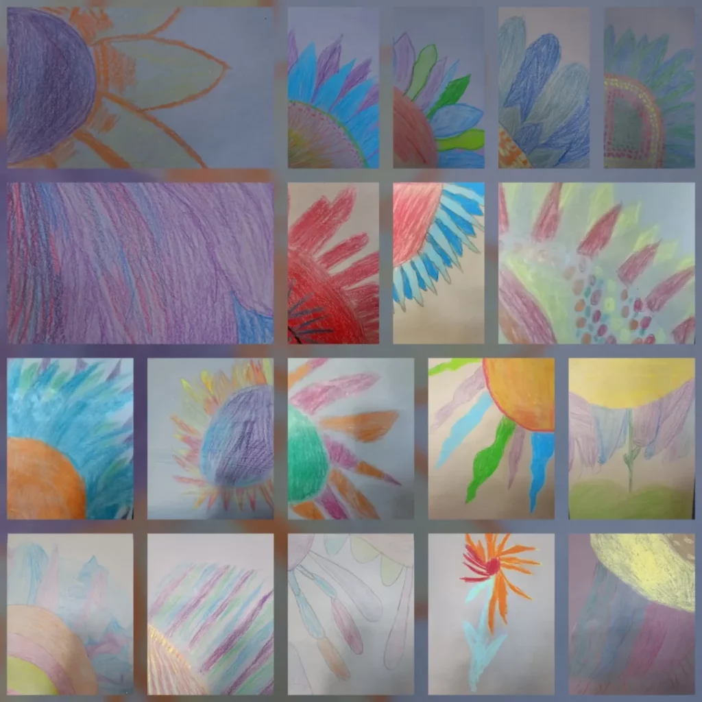 U svojim radovima učenici su, poput O’Keeffe, uvećali samo jedan dio cvijeta – suncokret – tako da ispunjava gotovo cijeli list papira. Time su željeli pokazati bogatstvo boja, oblika i detalja koje često ne primjećujemo na prvi pogled.