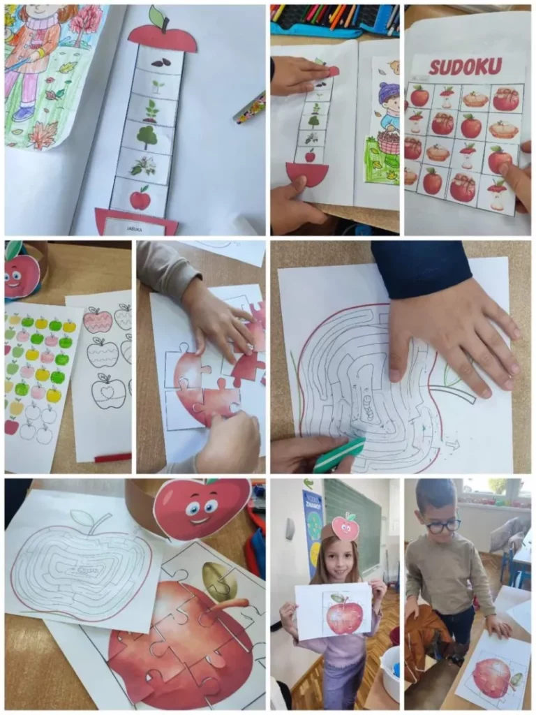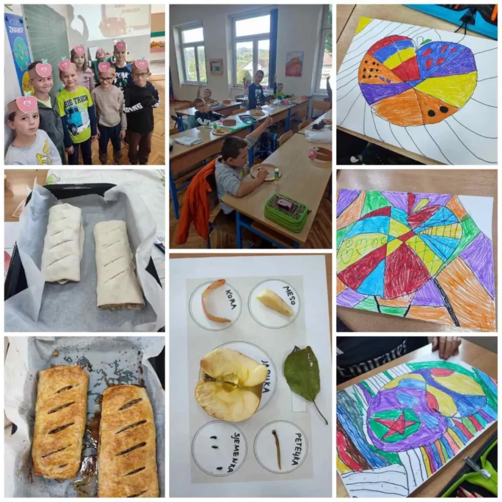 U ponedjeljak 20.10. učenici 1. razreda PŠ Gunjavci obilježili su Svjetski dan jabuka. Naučili smo da postoje razne sorte jabuka te da je svaka posebna zbog svog okusa. Istražili smo koji dijelovi jabuke čine jednu cjelinu te saznali da je kora najzdraviji dio jabuke. Također, naučili smo kako od jedne male sjemenke izraste veliko stablo koje daje puno plodova. O jabuci smo čitali pjesmu, slagali sudoku, puzzle, rješavali labirint te crtali zadane nizove jabuka, a po uzoru na brazilskog slikara Romera Britta crtali jabuke na satu likovne kulture. Na kraju smo se zasladili ukusnom štrudlom od jabuke.