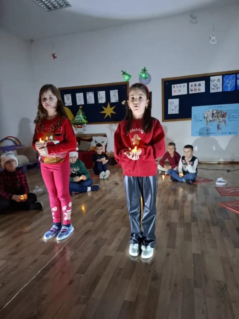 U mirno lazansko predvečerje tišinu je zamijenila vesela božićna pjesma. Okupili smo se svi u školi, 19.12.2025. Roditelji, braća, sestre, bake. Svi su s veseljem došli pogledati što smo im pripremili. Izmjenjivale su se recitacije, igrokazi, pjesme. Priredba je izgledala kao da nas je jako puno. Svi smo sudjelovali u svemu. Ponosno smo se predstavili, a zatim su roditelji pripremili hranu i piće za sve nas i naše goste. Druženje se nastavilo i nakon priredbe uz upaljene svijeće na našem adventskom vijencu.